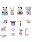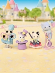 Присоединяйтесь к празднику в честь 40-летия Sylvanian Families. Этот очаровательный набор включает в себя 4 детских фигурки — панду Анджелу Пуки, слоненка Хилтона Бабблбрука, черно-белого котенка Анжелику Марлоу и снежного крольчонка Попларом Сноу. Все они одеты в костюмы артистов цирка. Вооружившись реквизитом для жонглирования, балансирования и фокусов, они готовы смешить и восхищать публику виртуозным исполнением трюков. Все фигурки могут удерживать аксессуары из набора.